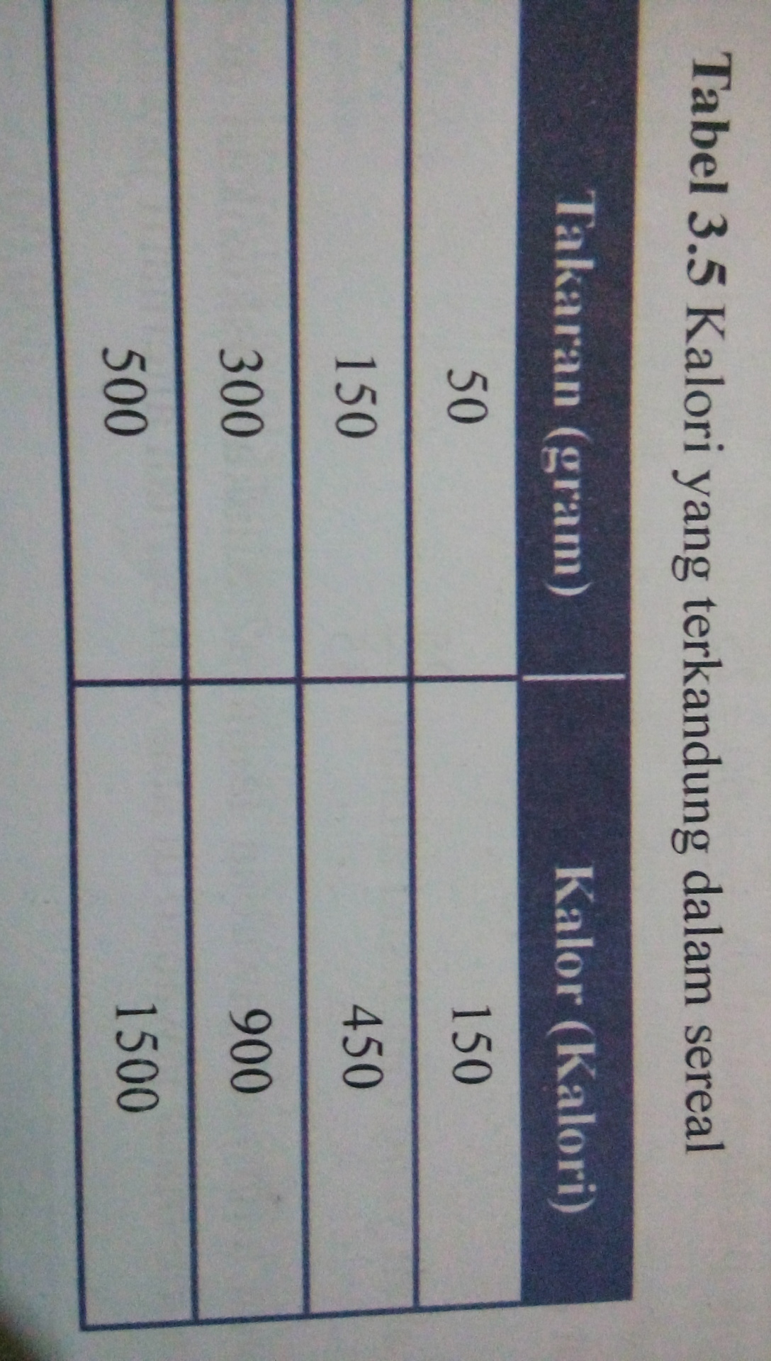 Berapa gram sereal yang rofiq makan? Takaran (gram) kalor (kalori) 50 150 150 450 300 900 500 1.500 18 kelas vii smp/mts semester 2 a. Fina makan 75 gram sereal. Rofiq makan sereal yang mengandung 1.000 kalori. Rofiq makan sereal mengandung 1.000 kalori.